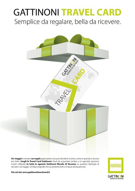 Noi ti possiamo aiutare con 1 bellissima idea: regala un viaggio e vedrai che sarà sicuramente apprezzato, ma, se vuoi lasciare ampia libertà a chi riceve il vs regalo, ti consigliamo la Gattinoni Travel Card, semplicemente una card ricaricabile con importo a tua scelta ed utilizzabile anche in più volte fino a quando non sarà esaurito il regalo.